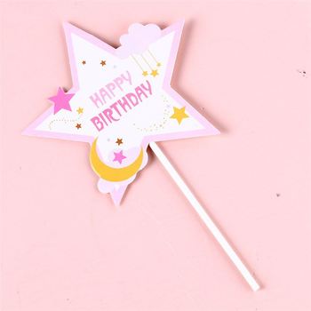 Decoración de fiesta de estrellas y luna con lentejuelas para niña, cartel de feliz cumpleaños, adorno para pastel