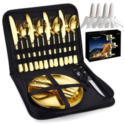 Camping en viaje alta calidad Hotel portátil tenedor cuchillo cuchara grado alimenticio vajilla cubiertos juego de cubiertos con estuche