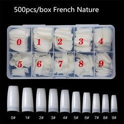 Salón profesional 500PCS Clear Long Square Art Tips Full Half Cover Press On Coffin Gel Set Nail Tools